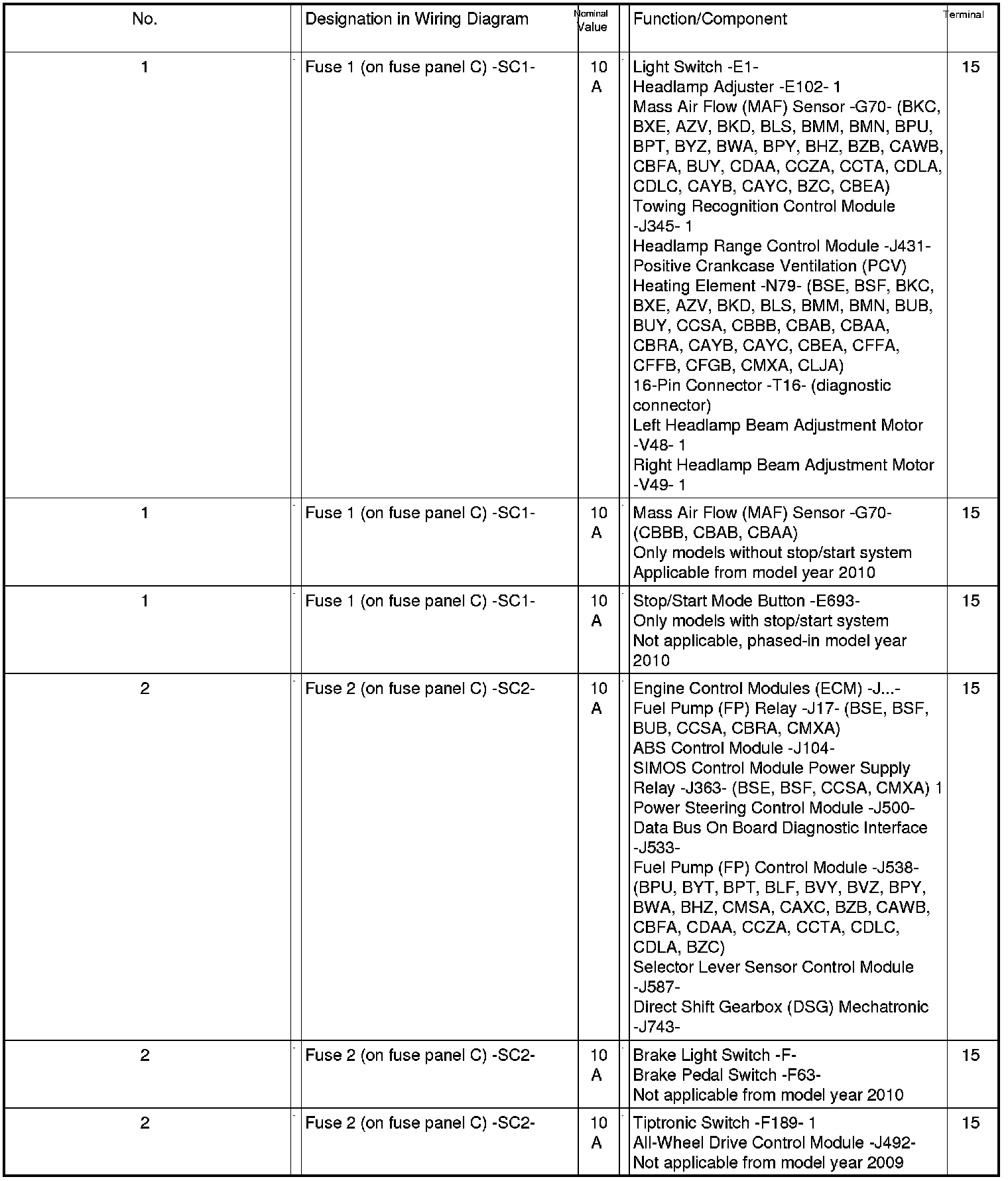 Position Of Fuses On Fuse Panel
