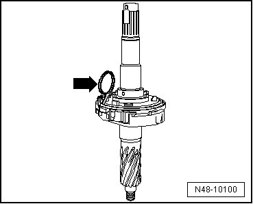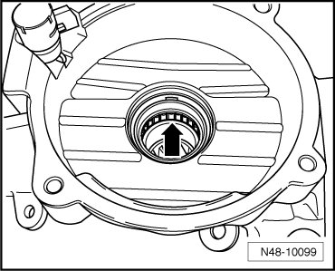 - Coat the gasket - arrow - in the cover with grease (G 052 168 A1). Only apply a thin film of it.