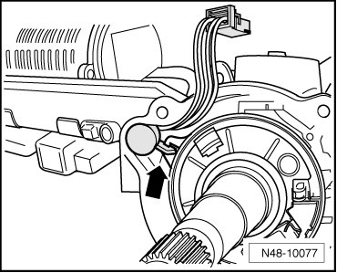• A locking mechanism - arrow - for the spiral spring is located on the sensor wire in the steering gear housing. When removing the sensor wire, make sure the spiral spring does not twist.