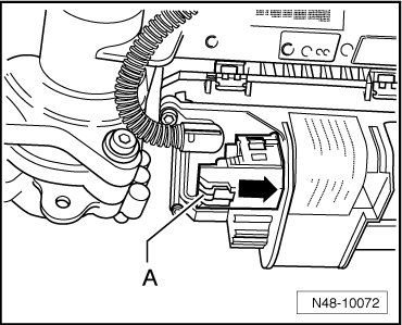 - Press the button - a - in the direction of the - arrow - and then disconnect the connector.