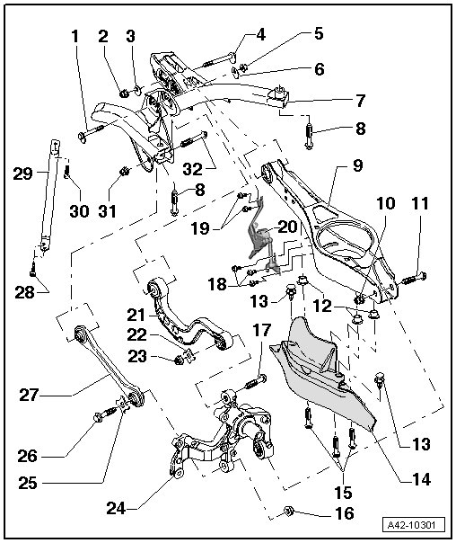 Subframe, Diagonal Brace, Lower Transverse Link, Upper Transverse Link, Tie Rod and Level Control System Assembly Overview