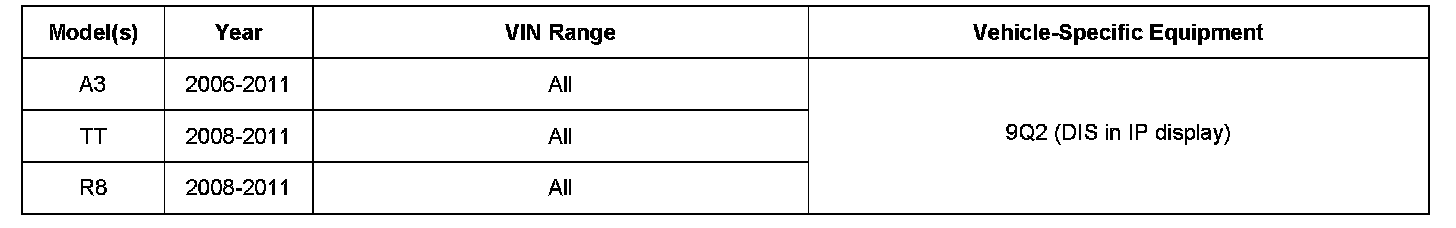 This affects only vehicles with driver information system (PR number: +9Q2).