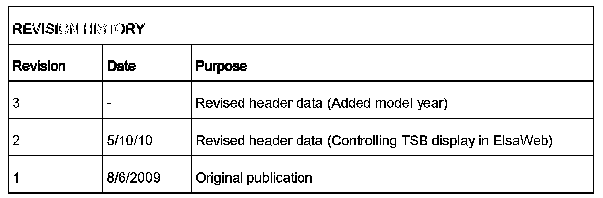 All parts and service references provided in this TSB are subject to change and/or removal. Always check with your Parts Department and service manuals for the latest information.