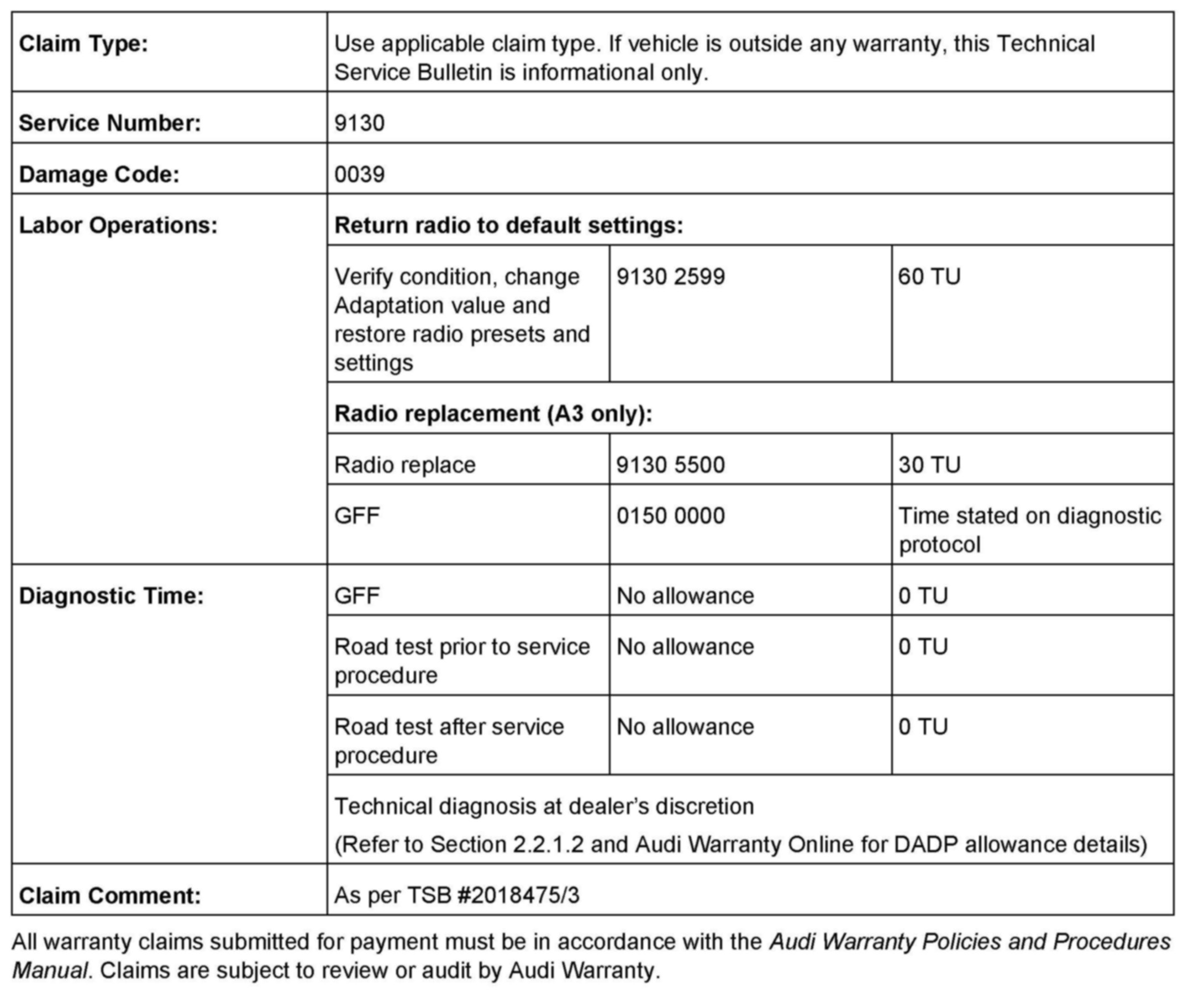 For A3 vehicles with a recurring customer complaint only: