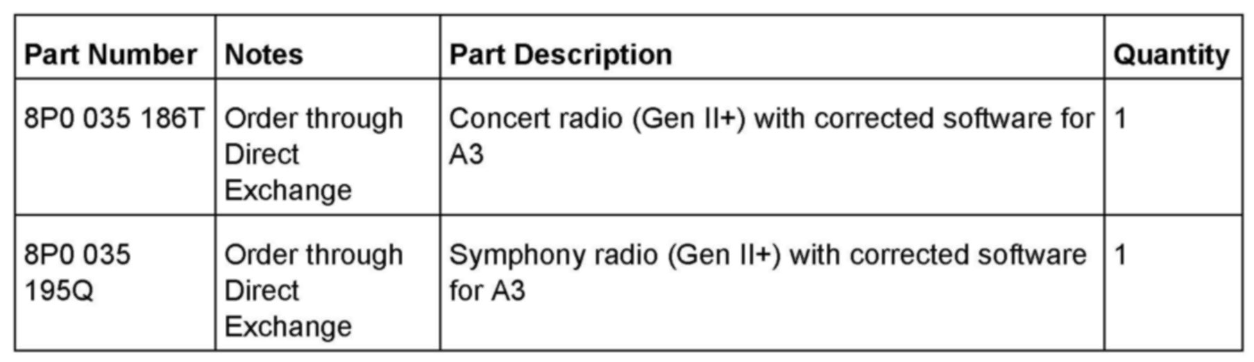 A4 / A4 Cabriolet: Not applicable (radio no longer in production).