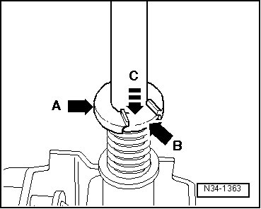 - To remove and install the lock washer - arrow A -, push the spacer bushing - arrow B - to the stop using a screwdriver in direction of - arrow C - and pull off the lock washer.