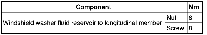 Windshield Washer Fluid Reservoir, Vehicles without Auxiliary Heating