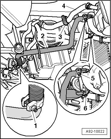 - Remove the coolant hose - 4 - bracket - 3 -.