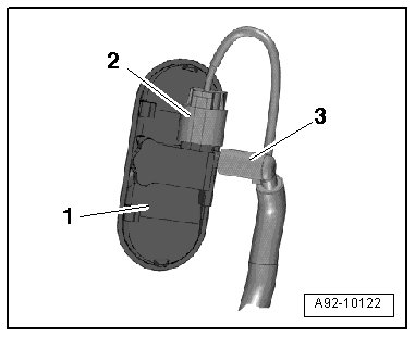 - Release the securing clip and remove the washer fluid line - 3 - from the nozzle - 1 - for the windshield washer system.