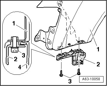 - Unscrew bolts - 3 - and pull guide piece - 2 - downward out of fender - 1 -.