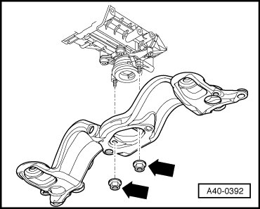 - Support transmission with Engine/Transmission Jack (V.A.G 1383 A) and a wooden block.