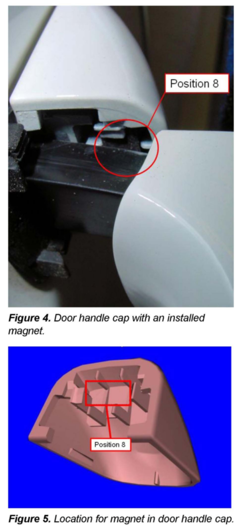3. Pull the affected door handle open and check if the magnet is installed (indicated as position 8 in ETKA illustrations and seen in Figures 3-5).