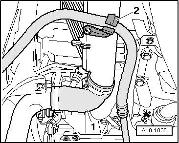 - Loosen quick-release fasteners - 1 - and - 2 - and remove front noise insulation.