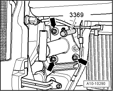 - For vehicles with auxiliary heater, remove bolts - arrows - for exhaust pipe of parking heater/auxiliary heater on noise insulation.