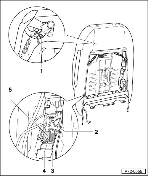 • Vehicles through 05.2002, VIN: 8H 3K 002 450: to prevent the head restraints or backrest adjustment from malfunctioning, attach a cable tie - 1 -.