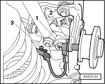 - Remove the wheel speed sensor - 1 - from the wheel bearing housing.