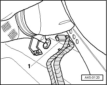 - Release the cable bracket, disconnect the speed sensor electrical connector - 1 - and press out the grommet (left and right sides are the same).