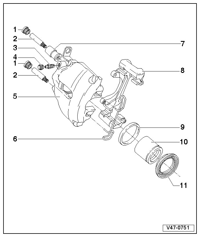• Apply a thin coat of lithium grease (G 052 150 A2 ) to the brake cylinder, piston and seal.