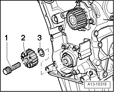 - Remove toothed belt crankshaft sprocket center bolt- 1 - and remove sprocket - 2 - and diamond disc - 3 -.