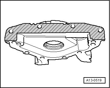 - Lightly coat lower sealing surface of sealing flange with sealant - shaded area -.