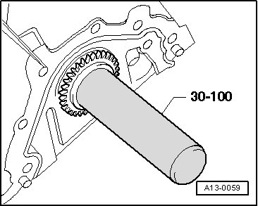 - Using pliers, install chain sprocket on crankshaft end and slide onto crankshaft to stop using press tube (30 - 100).