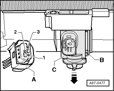 - Disconnect connectors - A - from the air quality sensor.