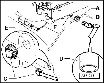 - Check condensation water drain hose - B -. It must not be twisted or crushed and must be located in the recess in the floor mat.