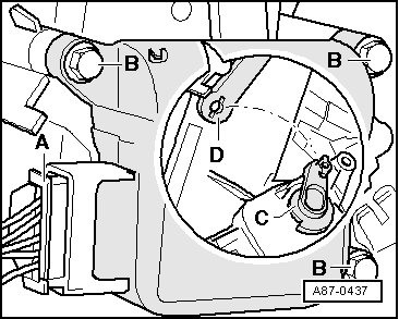 - Release lever - C - of the right temperature flap motor (V159) from connecting rod - D -.