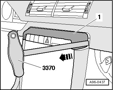 - Carefully pull off trim panel - 1 - using hook (3370) as illustrated.