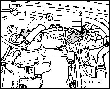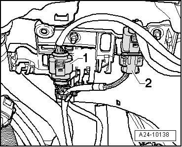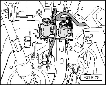 Camshaft Adjustment Valve 1 (N205) - 1 - and Fuel Pressure Regulator Valve (N276) - 2 -