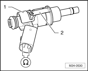 - Using a multimeter, check the Fuel Injector electrical terminals 1 to 2 for resistance.
