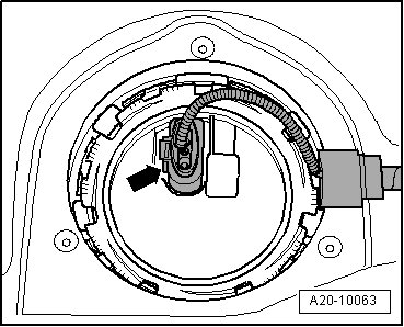 - Disconnect electrical harness connector - arrow - at left locking flange.