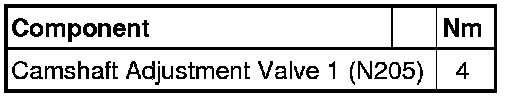 • Camshaft Adjustment Valve 1 (N205) as well as housing must be free of dirt and contamination.