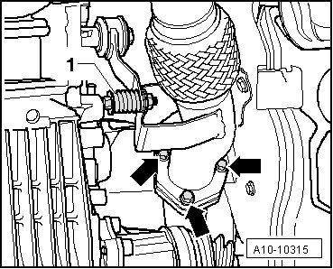 - Remove bolt - 1 - at bracket for front exhaust pipe and remove front exhaust pipe.