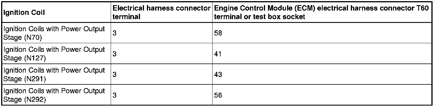 The following procedure is used to diagnose Ignition Coil with Power Output Stage (N70, N127, N291, N292).