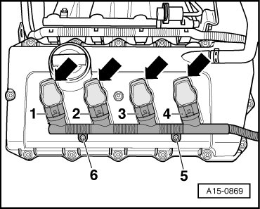 14 - Ignition coils with output stages -N323-, -N324-, -N325- and -N326- => [ Ignition coils with output stages ] See Image Below.