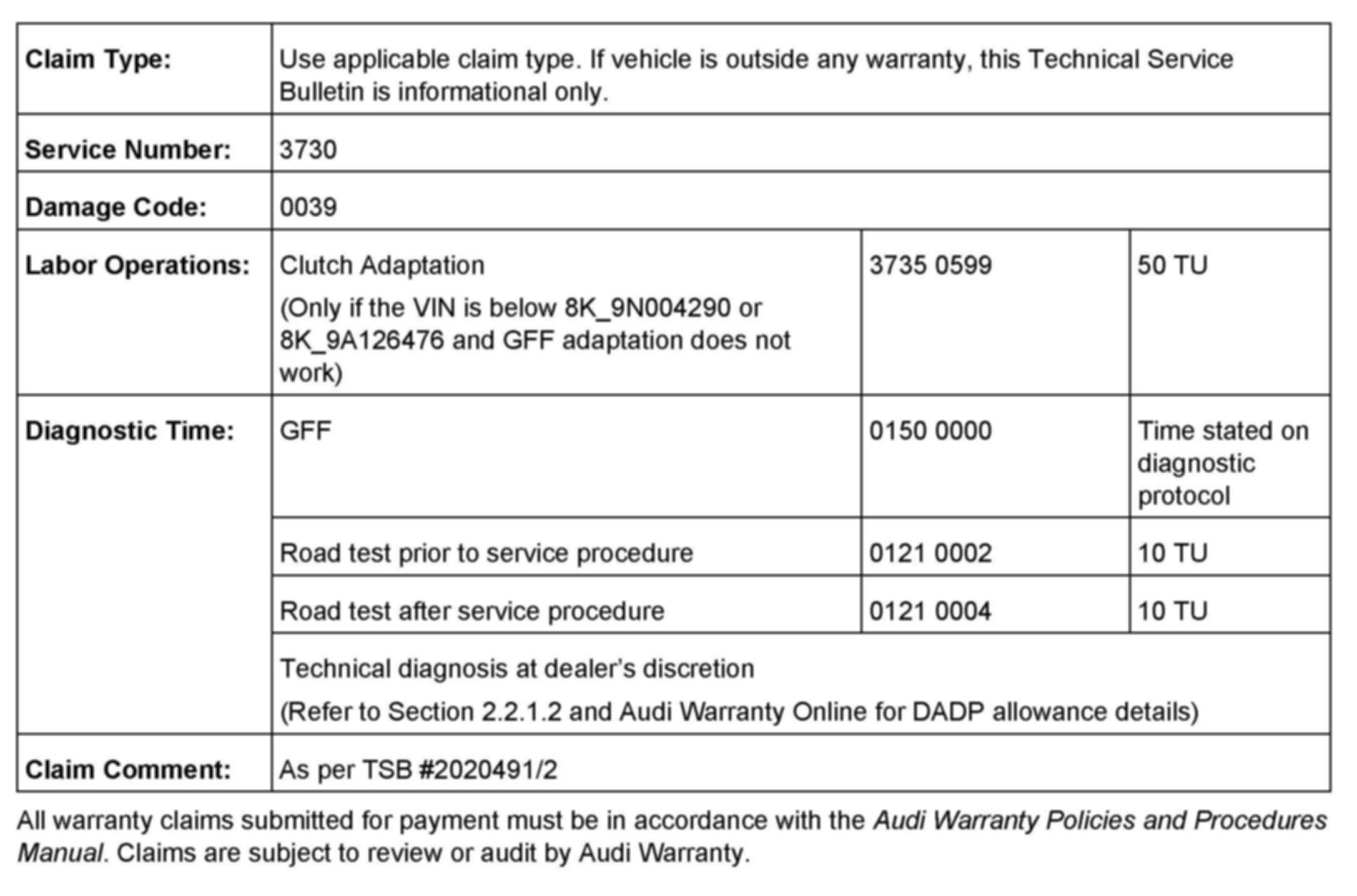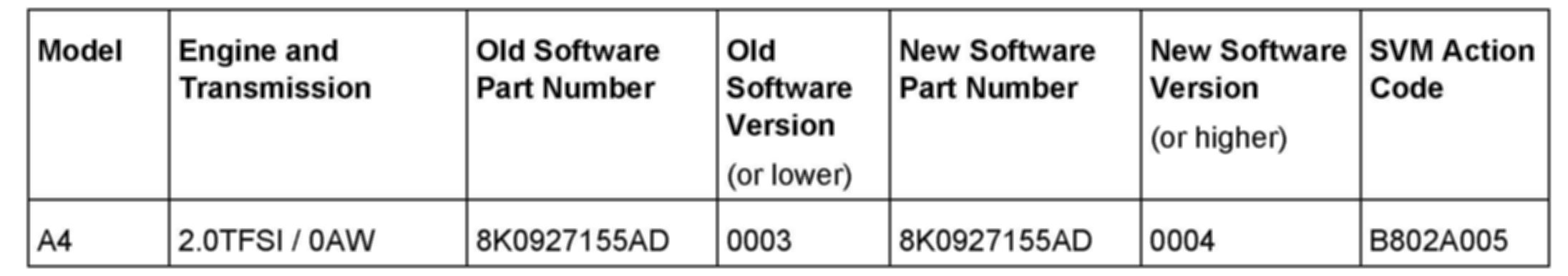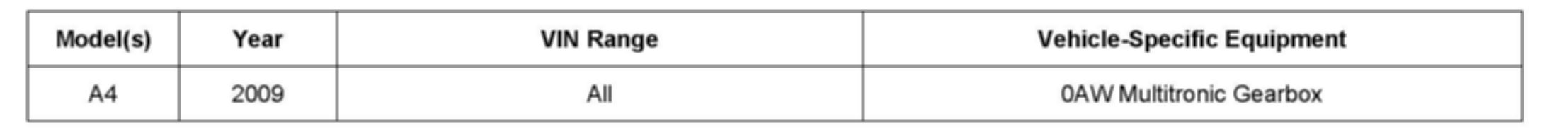 3. If the VIN is below 8K_9N004290 or 8K_9A126476, the forward and reverse clutches must be adapted after a software update. A clutch adaptation is not necessary on vehicles at or above this VIN break for this concern.
