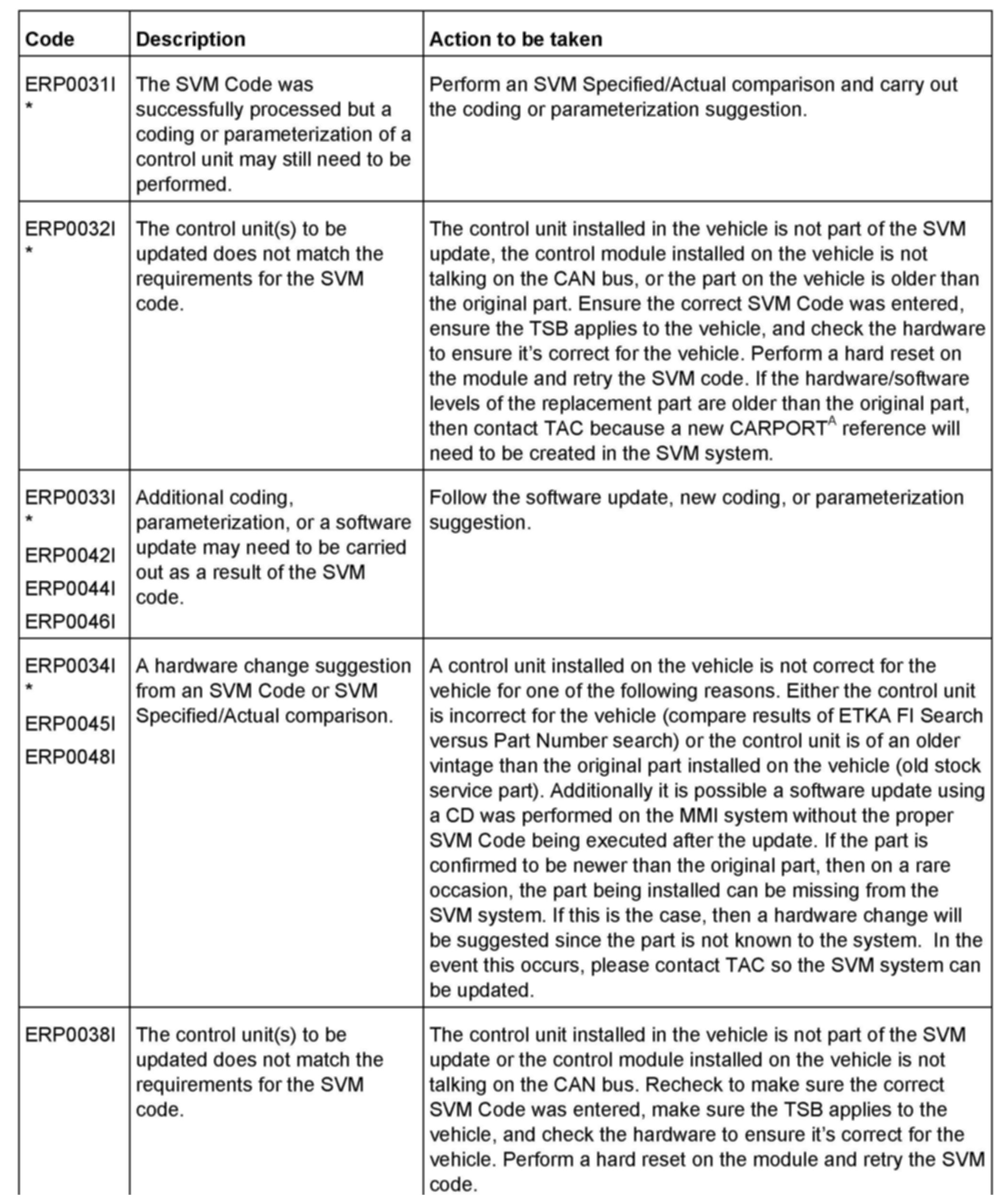 2. Update the transmission control unit (217) using the SVM action code as listed in the table if necessary.