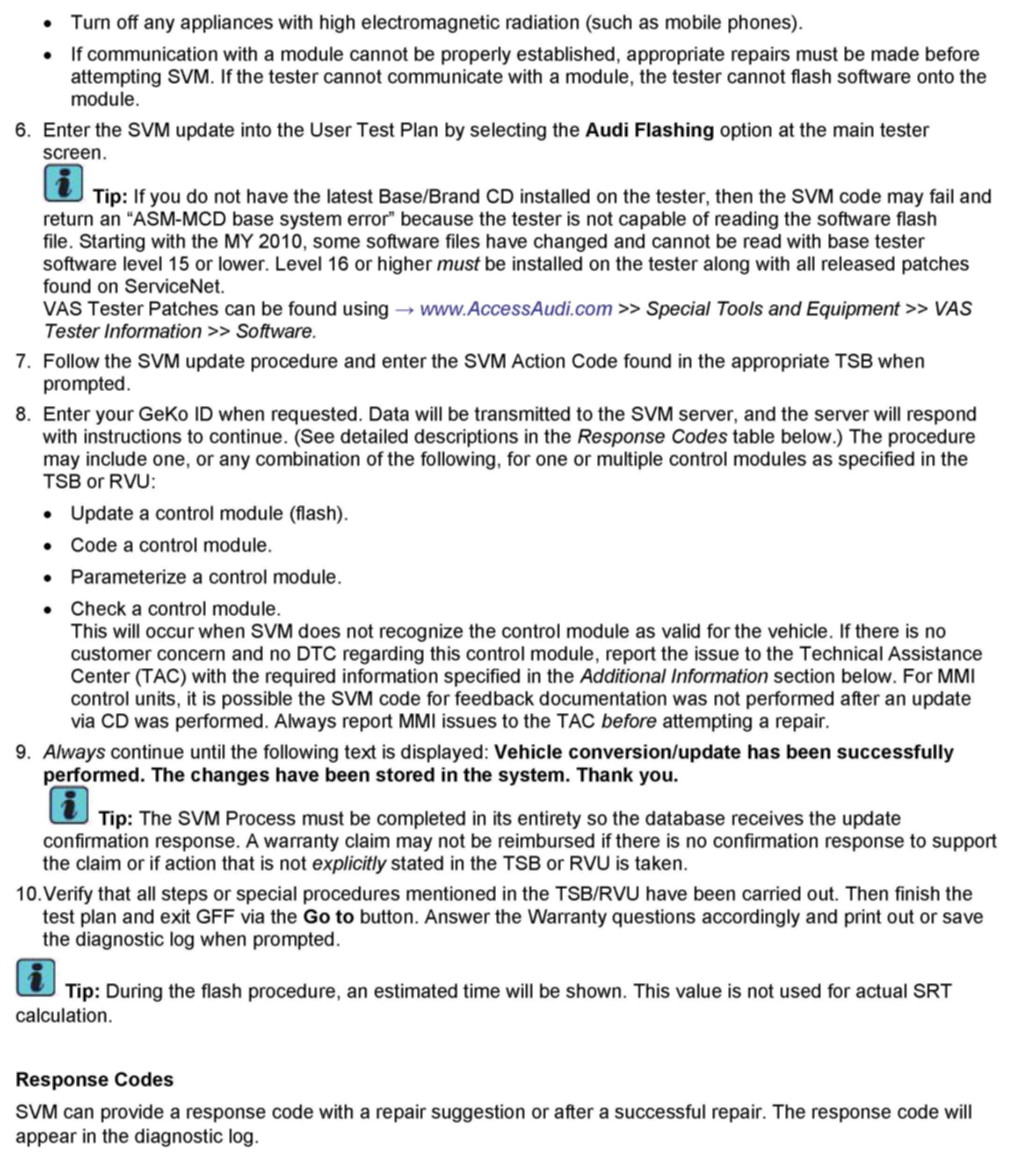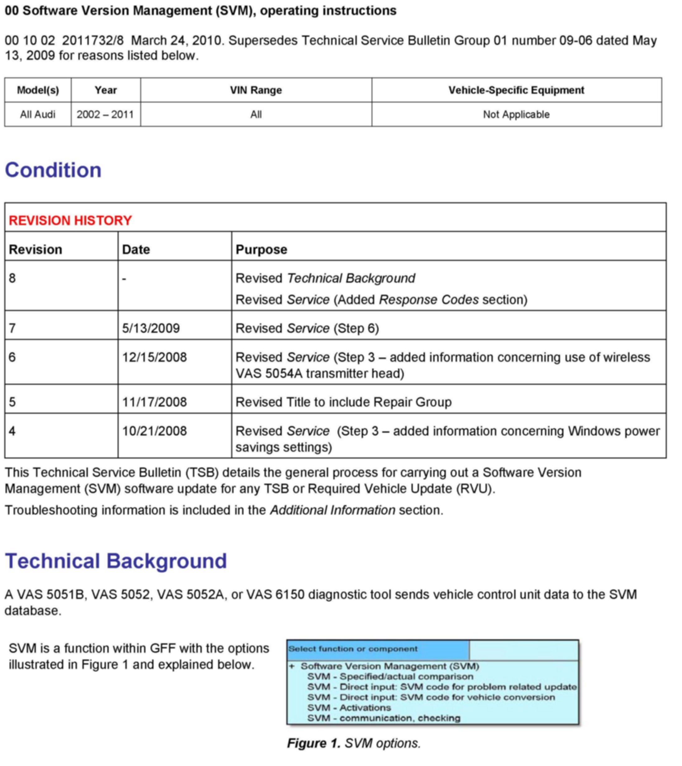 Attachment - TSB 2011732 00 Software Version Management (SVM), operating Instructions.