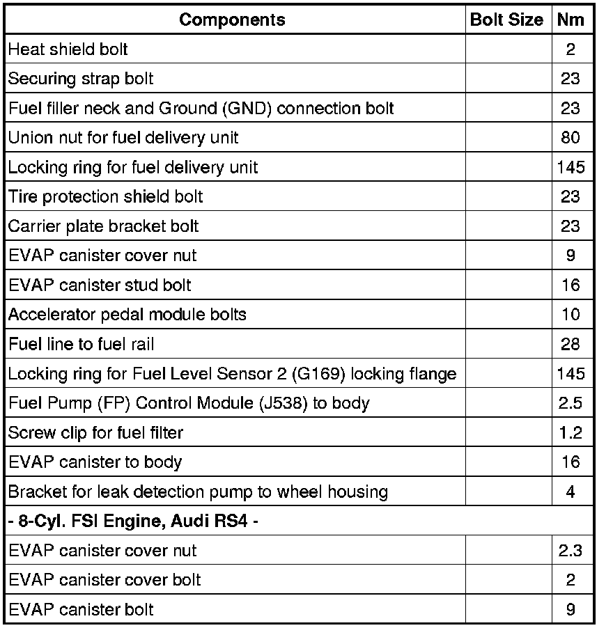 Fuel Supply System - Fastener Tightening Specifications