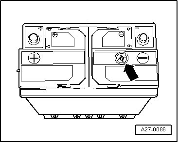 The charge indicator - arrow - provides information on the electrolyte level and charge level of the battery to be tested.