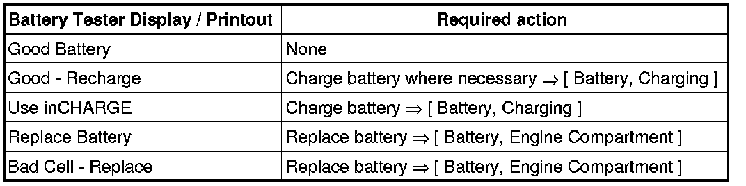 • In order to better determine a battery's overall condition, it is recommended to always perform the battery test in conjunction with the electrolyte specific gravity test