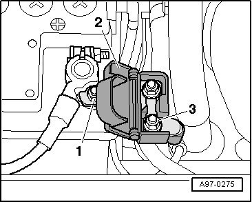- Fold cover - 2 - to side and remove nut - 3 - at electrical wire.