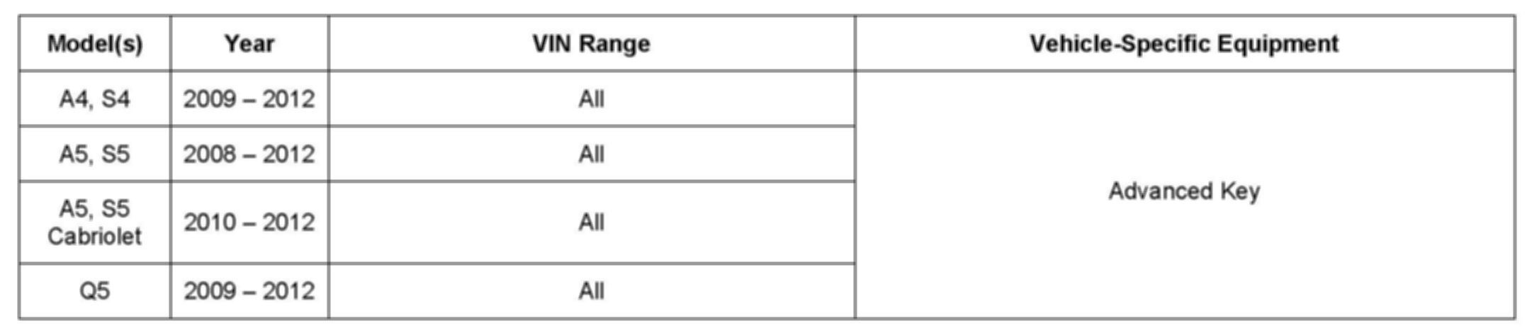^ DTC for "Outside Door Handle Touch Sensor - Incorrect Signal" is stored in the access/start authorization control module J518 (address word 05) for the affected door.