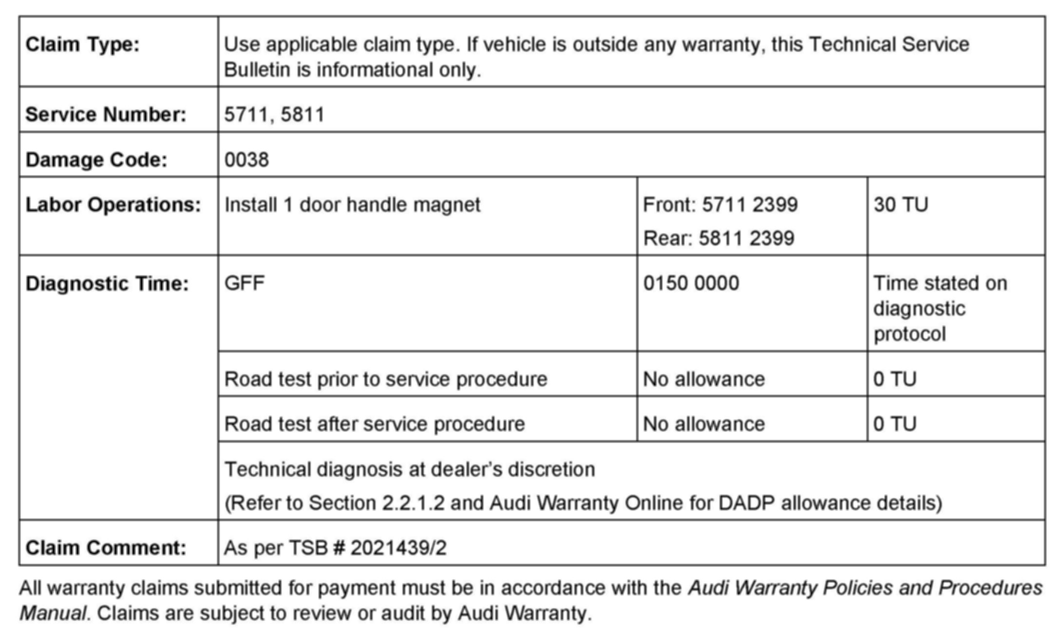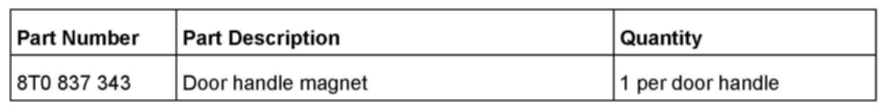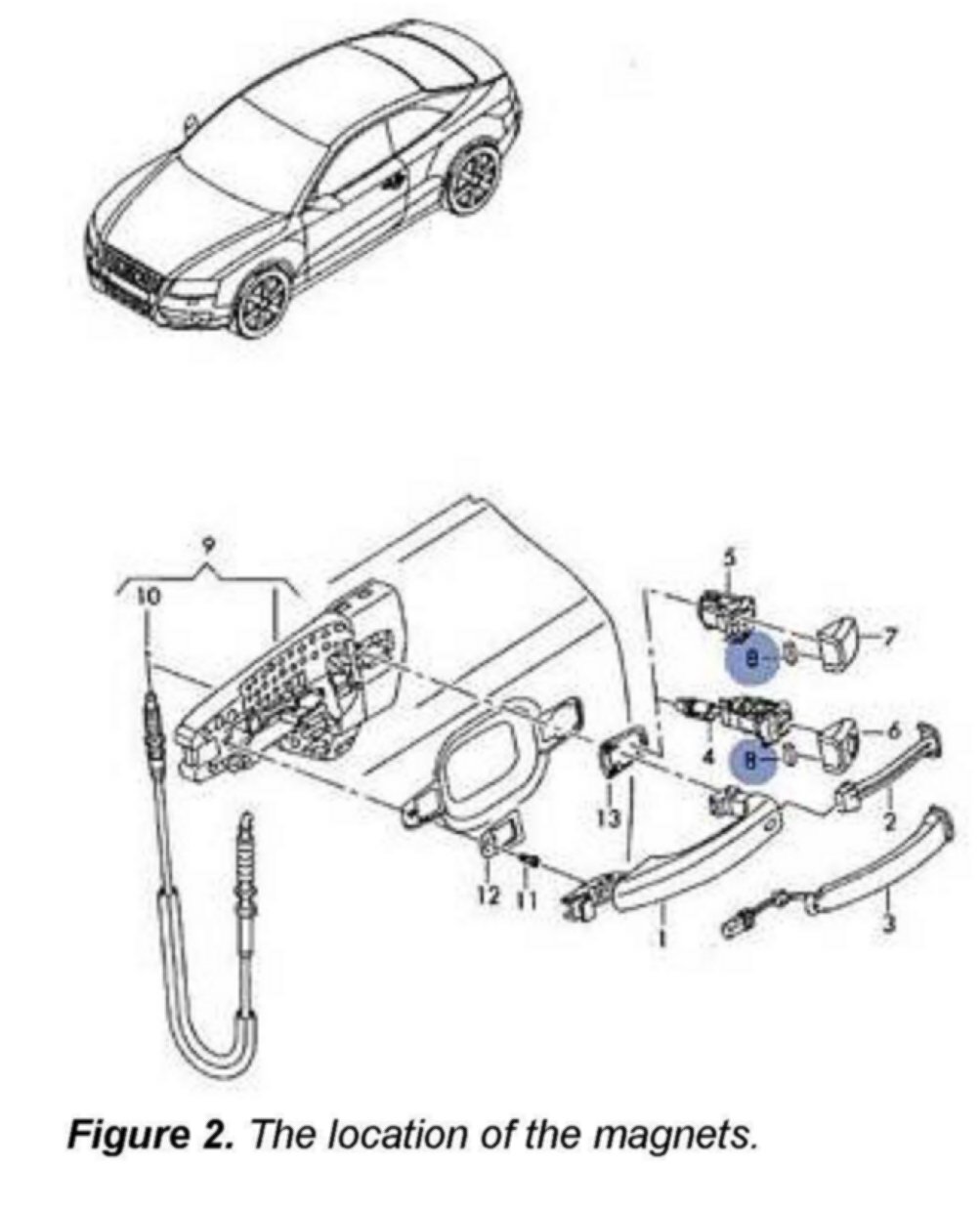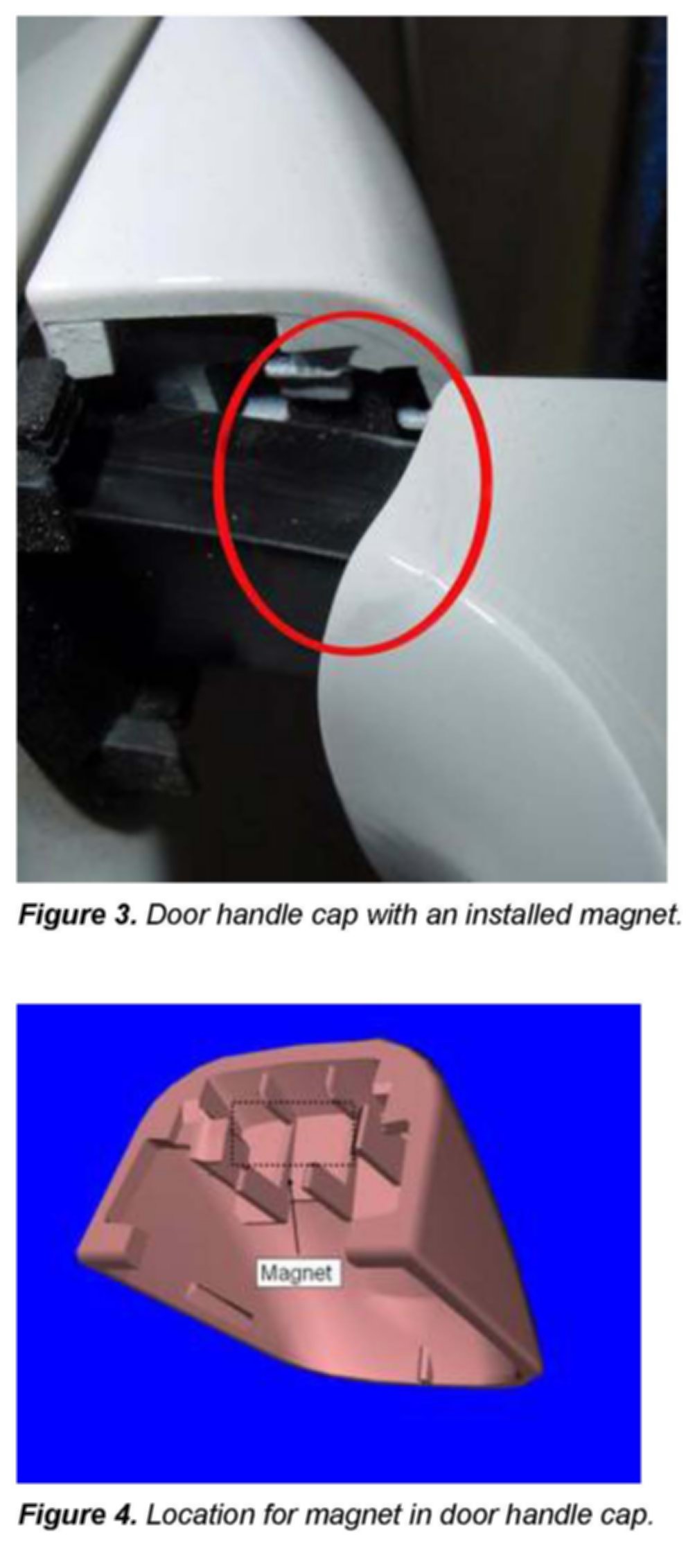 Pull the affected door handle open and check to see if the magnet is installed (Figures 2-4).
