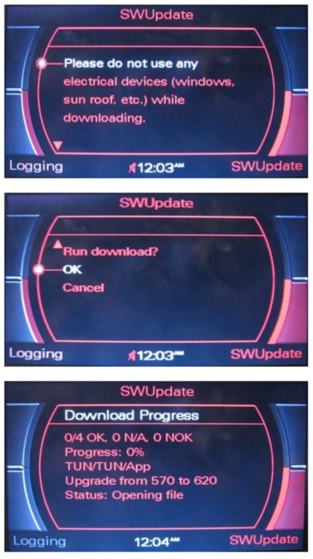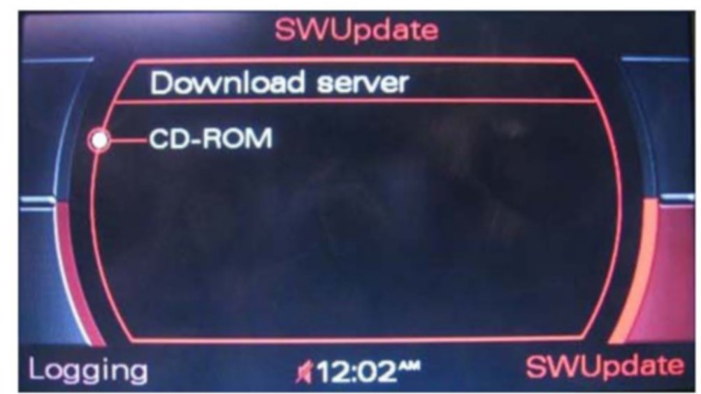 3. Insert the MMI Update CD 8K0 906 961 D into the first slot of the CD changer or in the CD player with the label facing up. Wait at least 10 seconds to allow the system to analyze the MMI flash CD.