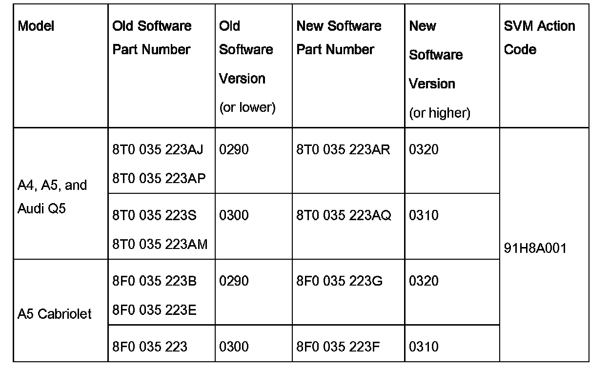 2. Update the amplifier J525 using the SVM action code as listed in the table above if necessary. The new software prevents the DTC from setting due to low voltage conditions.