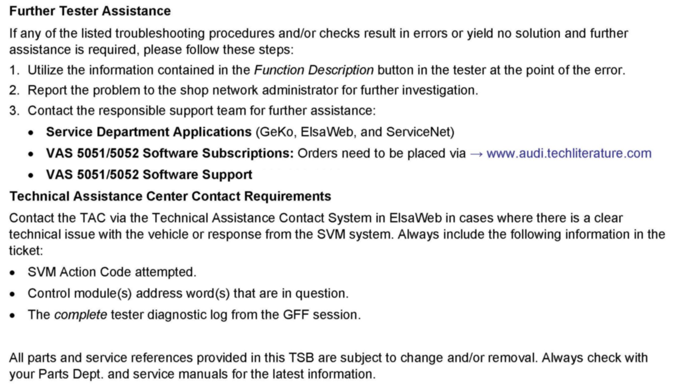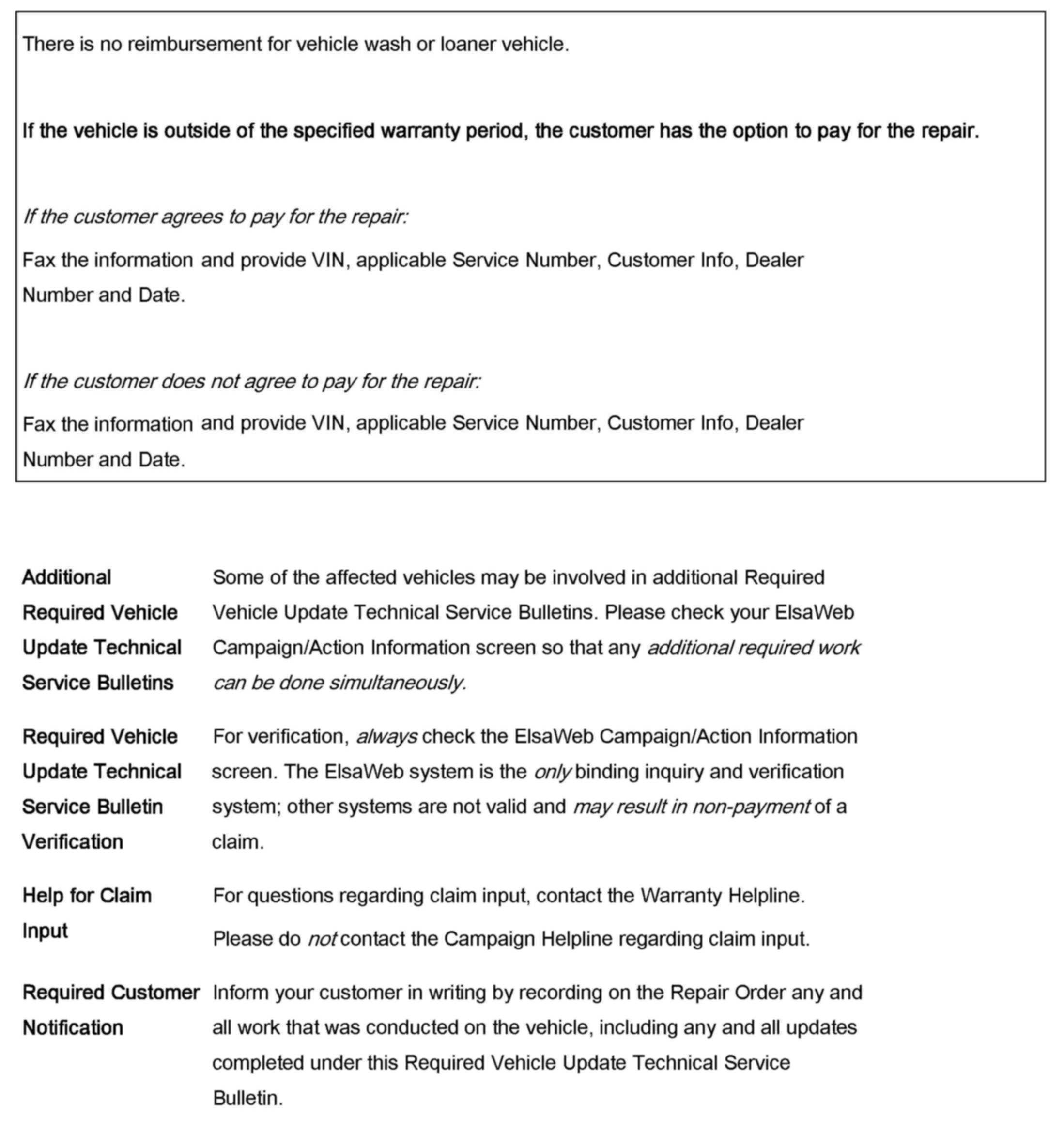 ^ Procedure must be performed within the allotted time frame stated in this Technical Service Bulletin.