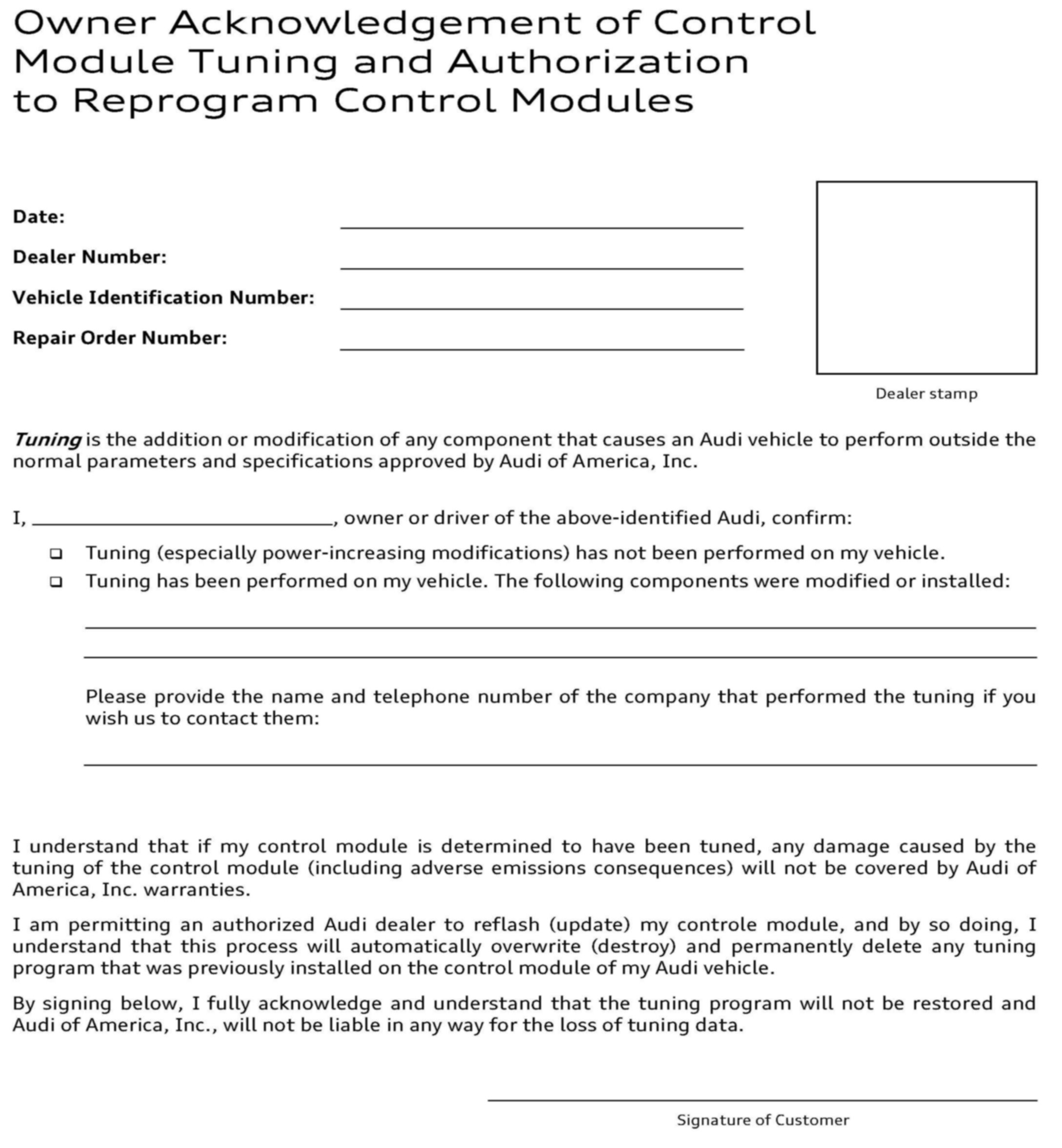 Procedure must be performed on applicable vehicles in dealer inventory prior to sale.