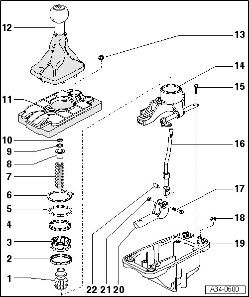 • Carefully pull over the selector rod => [ (Item 22) Selector rod ] and push rod => [ (Item 14) Push rod ] when removing